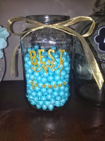 and the candy jar is a recycled spaghetti jar with gold glitter sticker lettering added for detail,